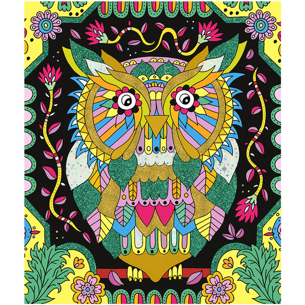 Il suffit de soulever la partie prédécoupée avec l’outil prévu à cet effet et de saupoudrer de paillettes, puis de décorer avec les feuilles métallisées. Cette activité ludique et manuelle ravira les enfants qui pourront décorer leur chambre avec leurs propres créations.