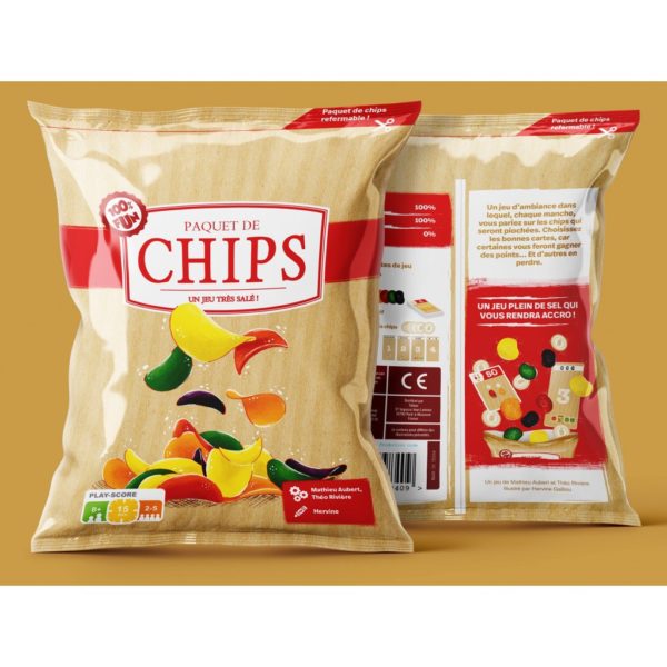 Paquet de Chips est un pur jeu d’ambiance et d’Apèro ! A chaque manche, vous pariez sur les chips qui seront piochées. Le joueur ayant remporté au moins 4 jetons de récompense gagne la partie. Un jeu qui ne manque pas de sel, et prêt à vous rendre accro !