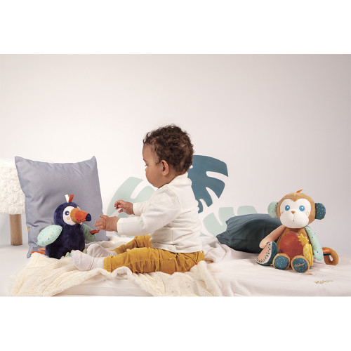 Kaloo vous emmène dansants la jungle avec cette nouvelle gamme exotique et stimulante. Alban le Toucan tout mignon et l’adorable Sam le singe qui accompagneront votre enfant dans le développement de ses sens et sa motricité de façon ludique et variée.