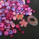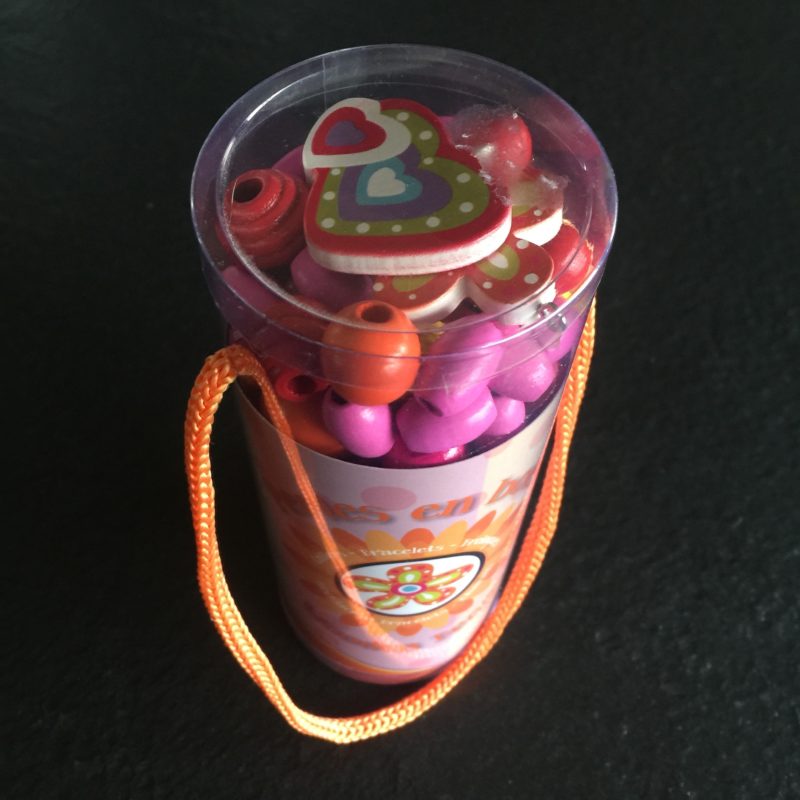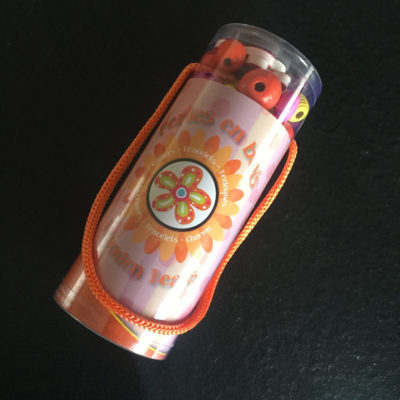 Tube de Perles Bois Violettes… Pour colliers, bracelets. Rempli d’environ 140 perles en bois de 5 coloris et 5 formes différentes. 2 breloques en bois, 2 lacets et un guide de création.