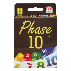 Pour encore plus de fun, le jeu contient des cartes « Joker » et « Passe ton tour » qui peuvent vous aider à vous sortir d’une situation délicate. Une carte « Joker » peut remplacer n’importe quel chiffre et n’importe quelle couleur pour compléter une phase, tandis qu’une carte « Passe ton tour » empêche votre adversaire de jouer pendant un tour ! Soyez le premier à réaliser les dix phases pour remporter la partie.