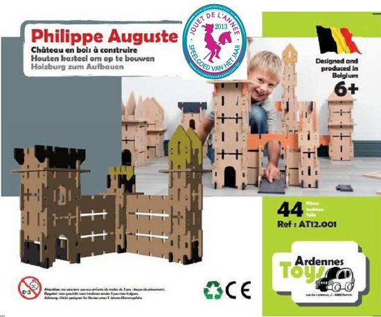 Philippe Auguste Château en Bois d’Ardennes Toys. L’indispensable pour les fans du Moyen Age, rien de tel que cet ensemble de 44 pièces en bois qui complètera à merveille la gamme My Castles. Designé et fabriqué en Belgique. Tours, murailles, ponts, … Des possibilités infinies de construction.