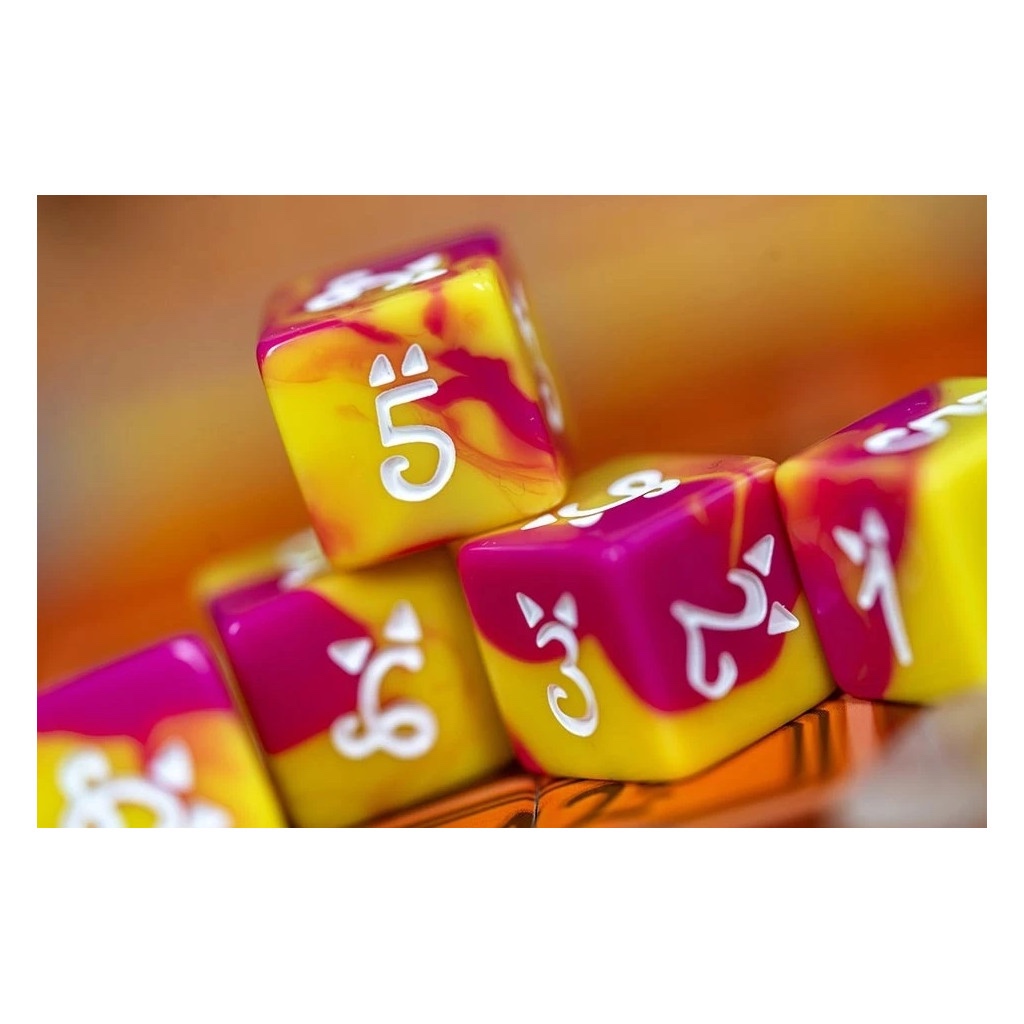 Pour empiler vos chats, il faut relier vos dés entre eux et respecter les bases de la pyramide. Si vous échouez, c’est la cat-astrophe : aucun chat ne s’ajoute et vos efforts s’envolent ! Mais si toutes les conditions sont remplies, vous remplacez vos dés par des tuiles Chat, parfois en simple pose, parfois en double ou triple pile selon la case. Les précieuses cases 8 offrent en plus des Pelotes, permettant de relancer tous les dés à un moment clé — un outil stratégique redoutable pour sécuriser un tour audacieux.