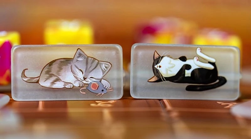 Le premier joueur à avoir empilé tous ses chats est déclaré vainqueur… mais la partie continue, lui offrant la possibilité d’utiliser les chats dorés pour viser un score prestigieux.