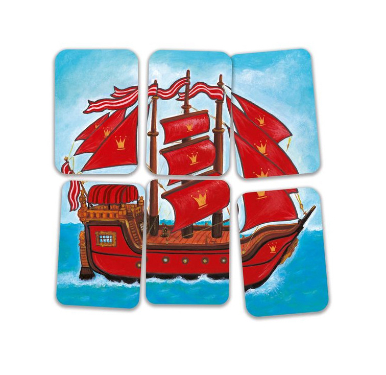 Piratatak est un jeu dans lequel il faut savoir prendre des risques… mais pas trop ! Aventureux ou prudent, à chacun sa stratégie pour construire son bateau avant que les pirates ne jettent un mauvais sort ! Le but du jeu est d’être le premier joueur à construire son bateau en rassemblant les 6 cartes « bateau » d’une même couleur ! Attention, les pirates attaquent et pour les contrer, il faudra se munir d’une carte « canon » ou bien se séparer de 3 de ses cartes ou de pièces d’or…