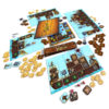 Le premier moment fort est celui de l’action, lors de l’ouverture du coffre à équipements. Grâce à une préparation géniale en sandwich entre deux plateaux, les joueurs découvrent simultanément les segments de bâteaux et les équipements disponibles aux enchères pour ce tour de jeu. Au top départ, on retourne un sablier et chaque joueur dépose un ou plusieurs meeples sur les tuiles qu’il souhaite gagner. En fait, toutes les tuiles sont offertes au plus offrant. Il y a donc autant d’enchères que de tuiles… mais tout se déroule en simultané et le temps d’un court sablier ! Chaque joueur peut poser ses meeples, jusqu’à ce que n’importe quel joueur décide de crier « stop! ». Une fois le temps écoulé, les résultats des enchères sont évalués, chaque joueur prend le matériel gagné et agrandit ou équipe son bâteau.