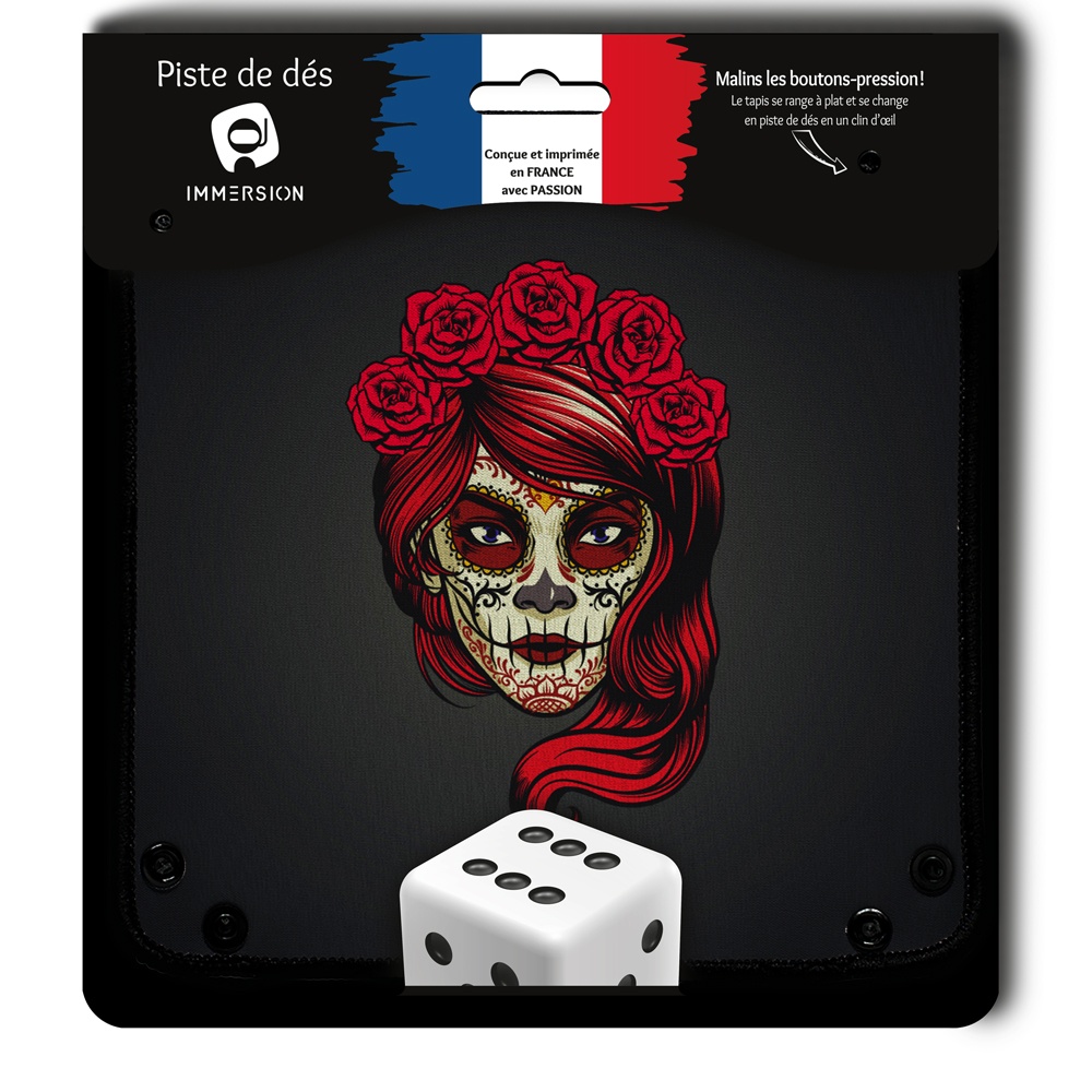 Les boutons pression transforment la piste de dés en quelques secondes et facilitent le rangement à plat ou roulé.