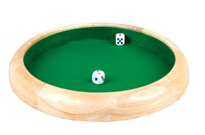 Piste en bois ronde 29 cm de diamètre, livrée avec 2 dés. Bordure externe de la piste arrondie. Pratique pour yatzee, yam, 421, et autres jeux de dés …