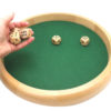 Grande piste en bois ronde 40 cm de diamètre extérieure, livrée avec 5 dés. Bordure externe de la piste arrondie. Pratique pour yatzee, yam, 421, et autres jeux de dés …
