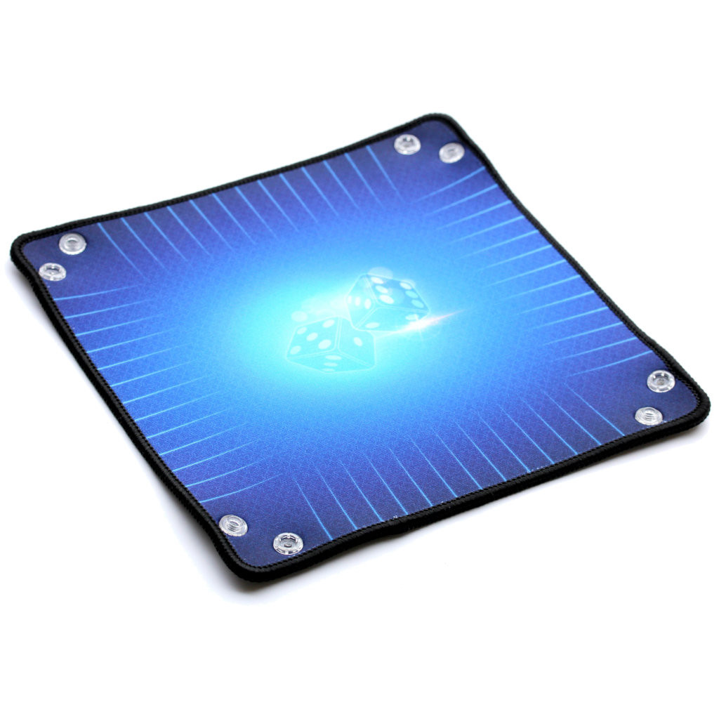 Avec la piste de Dés Néoprène BLEU de Wogamat, posez le tapis, enfoncez les pressions, et votre piste de dés est prête !