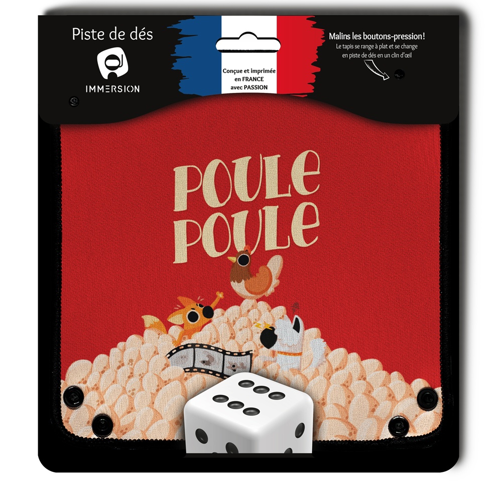Grâce à votre Piste de dés, faites des lancers de dés silencieux et avec les bords incurvés augmentez la rotation de vos dés. Le super combo avec votre jeu Poule Poule !