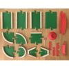 Contenu : 2 Départ, 1 arrivée, 4 lignes droites, 3 virages, 7 accessoires, 1 bille.
