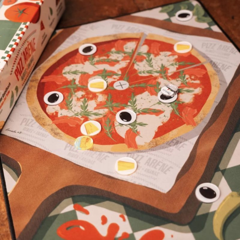 Placer le plus grand nombre de votre ingrédient favori au plus près du centre de la pizza, et empêcher l’adversaire d’y parvenir. Seuls les ingrédients qui touchent la surface de la pizza (bords compris) comptent. Chaque ingrédient d’une même équipe, si aucun ingrédient de l’équipe adverse n’est plus près du centre, compte alors pour un point (comme à la pétanque). Un match de Pizz’Arène se dispute en plusieurs manches. La première équipe à totaliser 6 points remporte le débat.