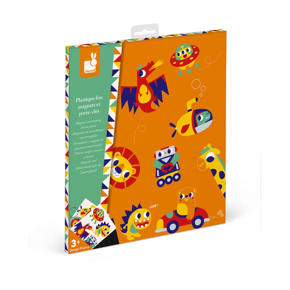 Set d’activités créatives, issu de la collection « Les Ateliers du Calme » de Janod.  Ce kit créatif Plastique fou Magnets et porte-clés est une activité manuelle qui va plaire à vos enfants, avec ses 8 magnets et son porte clés à confectionner en plastique fou !