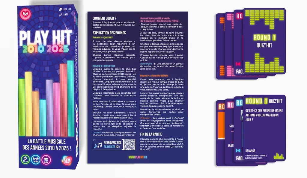 Play Hit 2010-2025… reprend les codes qui ont fait le succès de Play Hit avec son format en 4 manches, cette fois en se portant sur les tubes de 2010 à 2025. En 4 manches, affrontez-vous en équipe et répondez à un maximum de questions sur les hits français et internationaux des années 2010 et 2025.