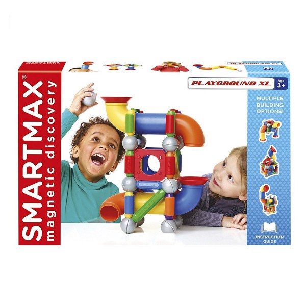 Playground XL Un ensemble adapté aux enfants comprenant beaucoup de pièces magnétiques de différentes formes et couleurs, et permettant à l’enfant de réaliser de nombreuses constructions et des toboggans à billes.