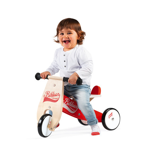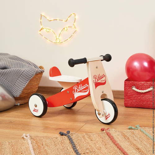 Le porteur en bois Little Bikloon rouge et blanc de Janod est idéal pour accompagner les premiers pas de votre enfant et développer son sens de l’équilibre.
