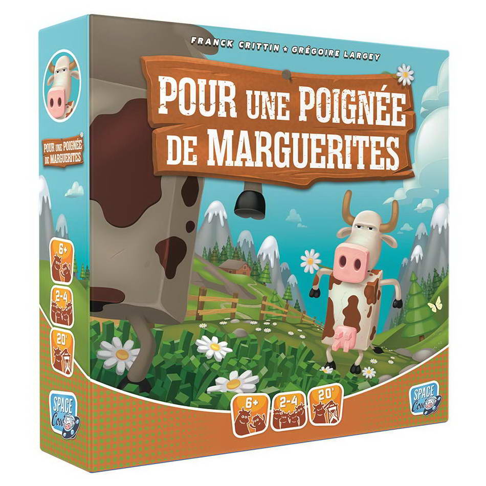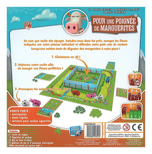 Incarnez une vache, parcourez la prairie et régalez-vous… Mangez certaines fleurs sur votre parcours et recouvrez la totalité de votre plateau individuel ! Pour une Poignée de Marguerites est un jeu de plateau et de course accessible dès 6 ans.