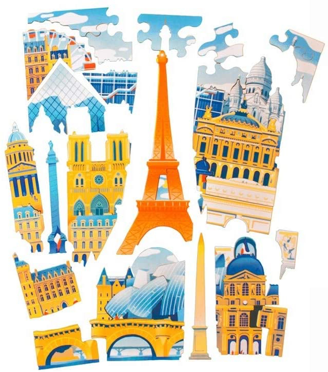 Paris en Folie … et ses monuments emblématiques.  Puzzle Michèle Wilson de 50 pièces en bois découpé à la main et fabriqué en France.