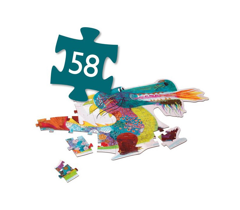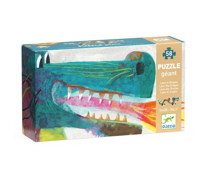 Le puzzle Géant Léon le Dragon de Djeco, composé de 58 pièces permet de réaliser un extraordinaire Dragon géant de 1,38 mètre. Dans la droite ligne graphique de Djeco ce puzzle est découpé à la forme de l’illustration et non enfermé dans un cadre classique.