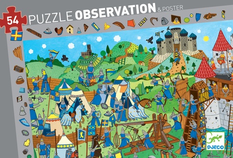 Découvrez le Puzzle Observation Chevaliers de Djeco, un puzzle de 54 pièces riche en détails et en surprises pour les enfants.