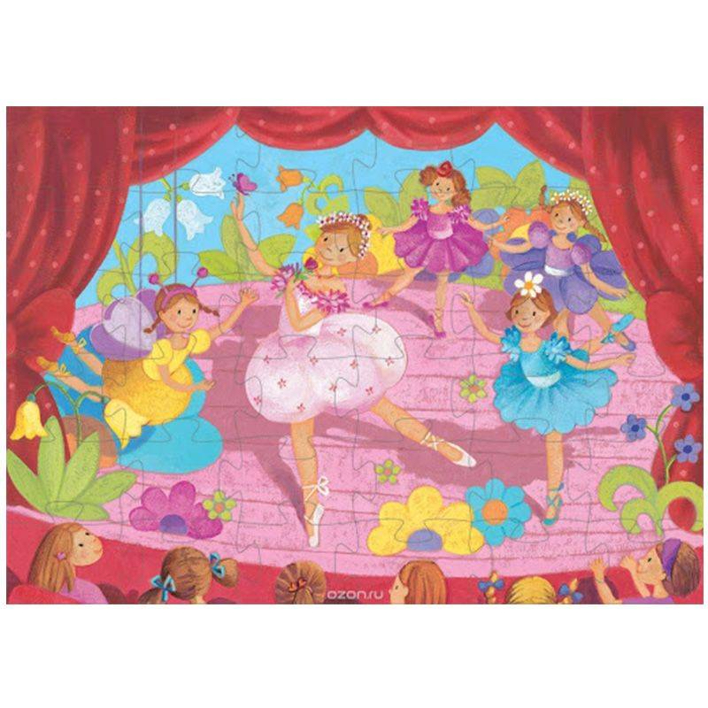 Le puzzle La ballerine à fleur de Djeco composé de 36 pièces est présenté dans une boîte originale en forme de danseuse ballerine. Ce puzzle illustre une scène de danse de ballet, dans un format atypique.