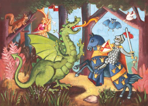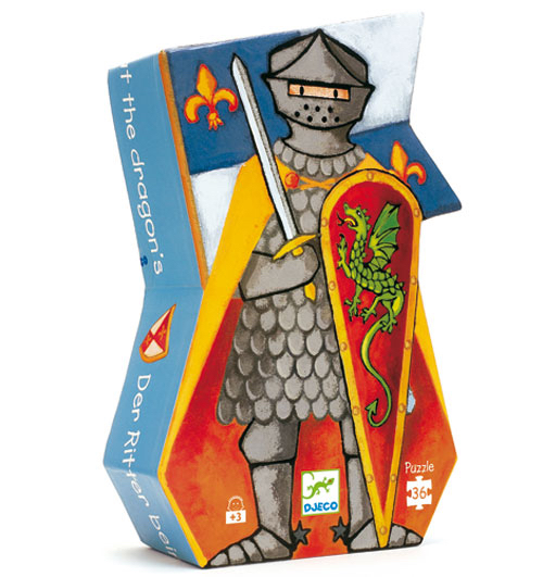 Le puzzle Le Chevalier au Dragon de Djeco fait parti de la grande famille des puzzles silhouettes. Celui ci représente une scène avec dragon et chevalier en plein combat dans un puzzle de 36 pièces.
