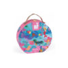 Puzzle en carton livré avec un poster pour faciliter la réalisation du puzzle. Il est vendu dans une jolie valisette ronde avec poignée tissu et loquet en bois pour le ranger une fois le jeu terminé et pour le transporter facilement. Le puzzle est accompagné d’un poster servant de modèle.