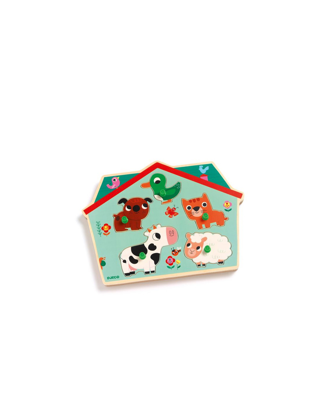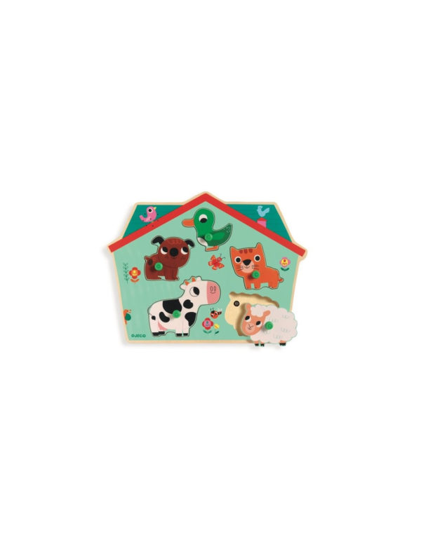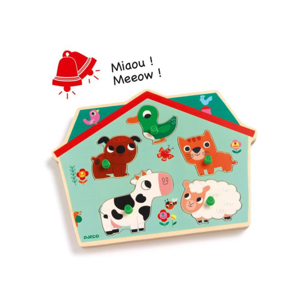 La vache, le mouton, le chien, le chat et le canard… L’enfant manipule et oriente correctement chaque animal pour le remettre dans son emplacement et découvrir le cri qu’il produit !