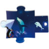 Puzzle avec des illustrations aux couleurs douces sur le thème des animaux. Un poster sert de modèle afin de faciliter l’assemblage du puzzle.