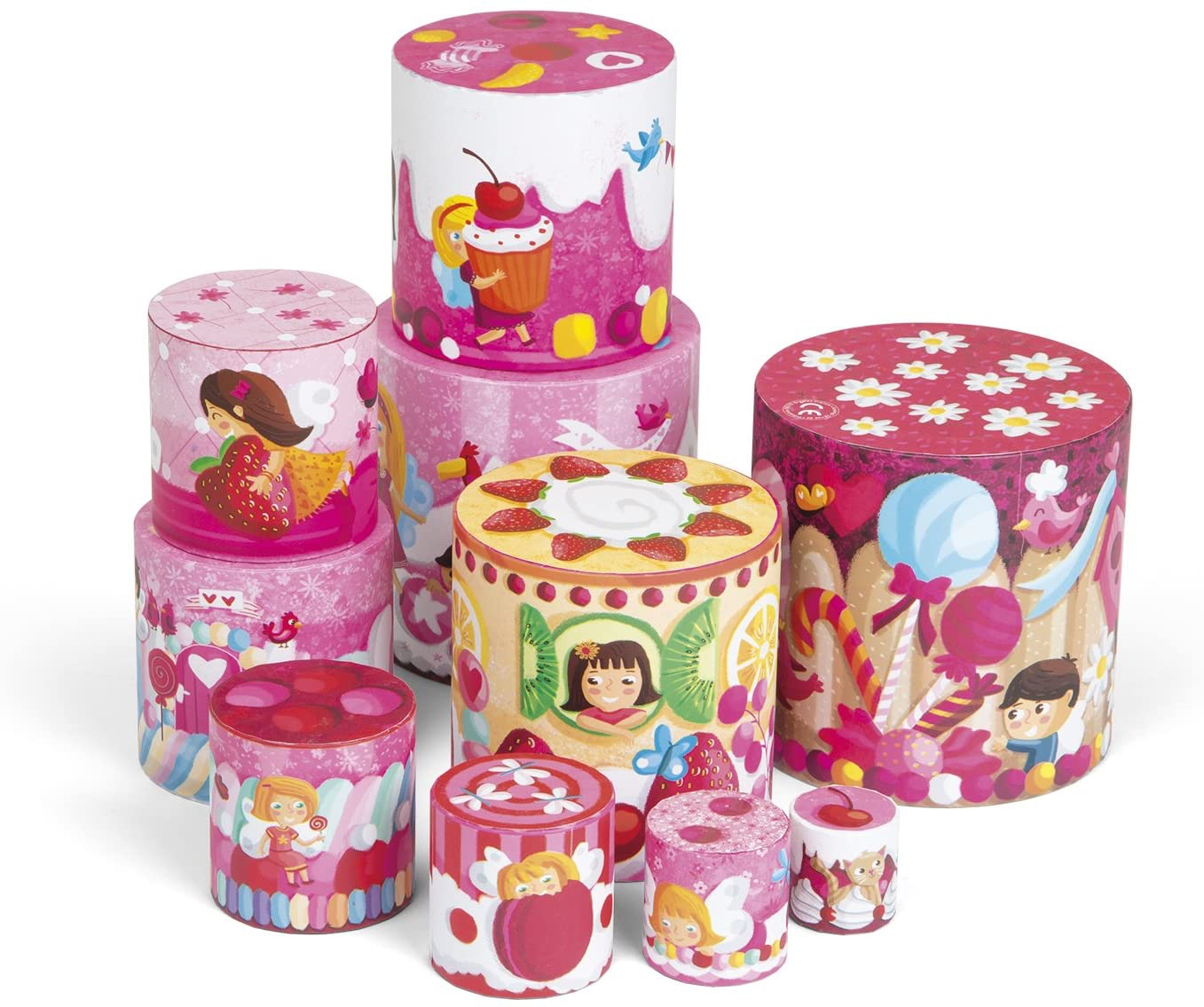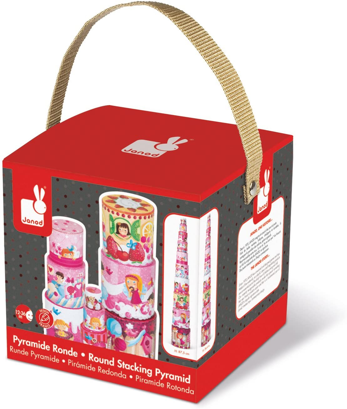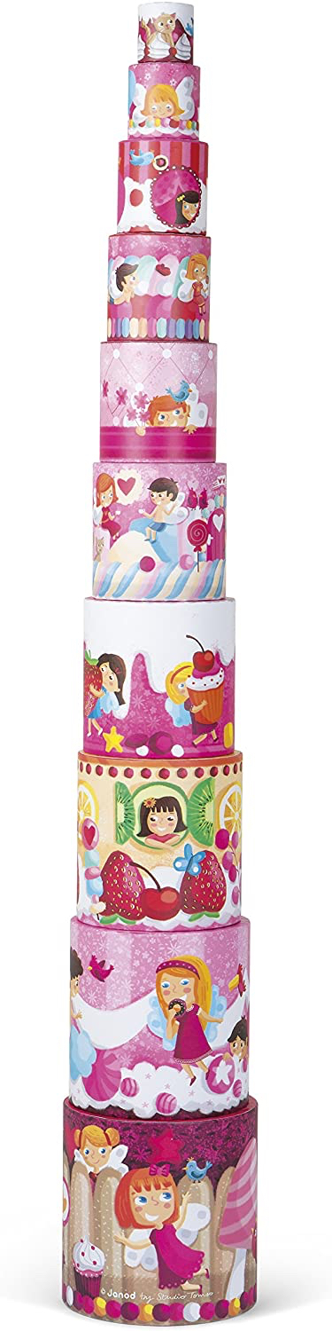 Jolie pyramide ronde gigogne en carton sur le thème de la « Gourmandise » de Janod, idéal pour développer la motricité de bébé et son imagination tout en s’amusant !  Les pièces encastrables constituent aussi un puzzle vertical, et ravira les plus petits comme les plus grands, Hummmmm …