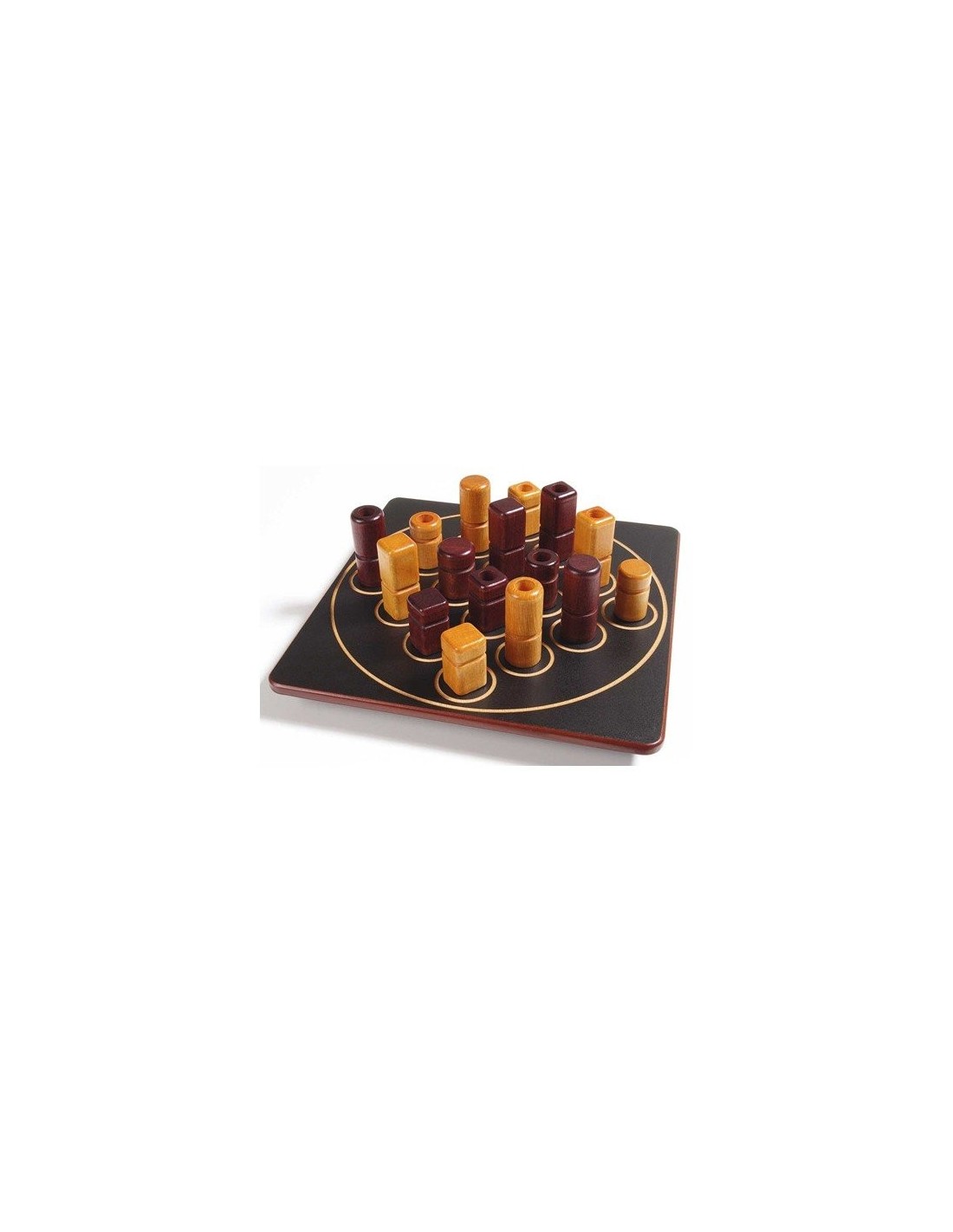 Le coffret comporte 16 pièces claires ou foncées en hêtre, un plateau de jeu vernis et gravé, un sac de rangement et la règle du jeu.