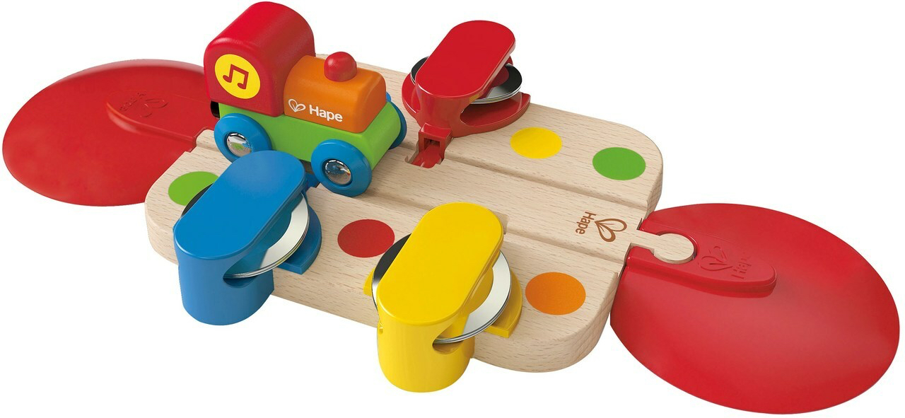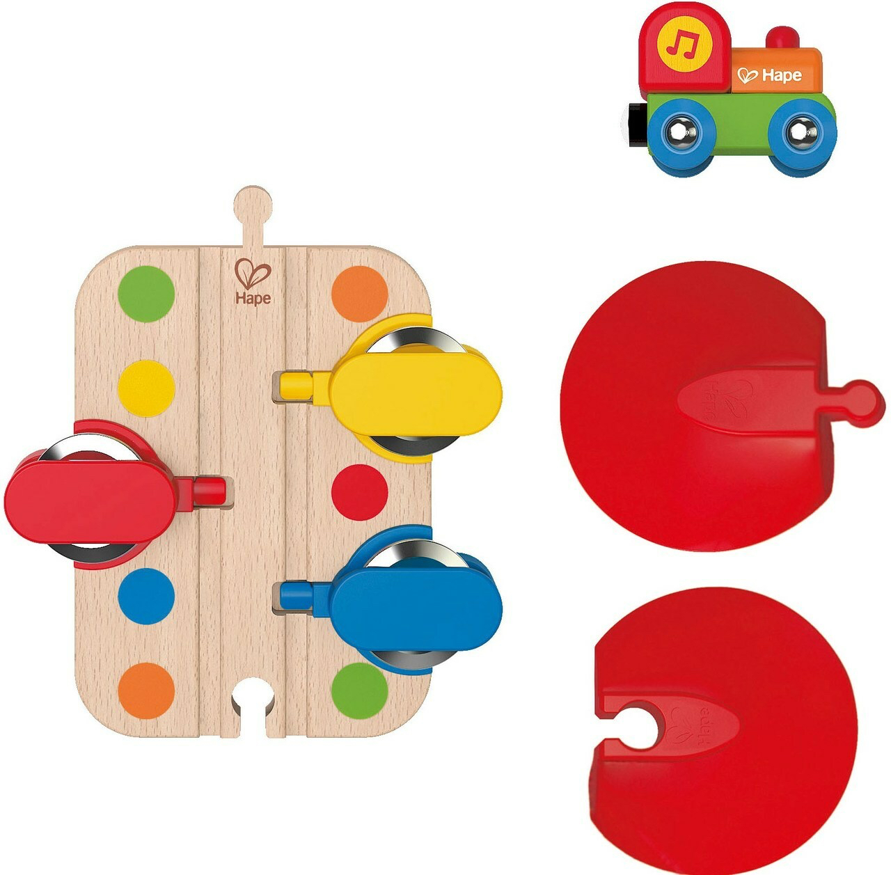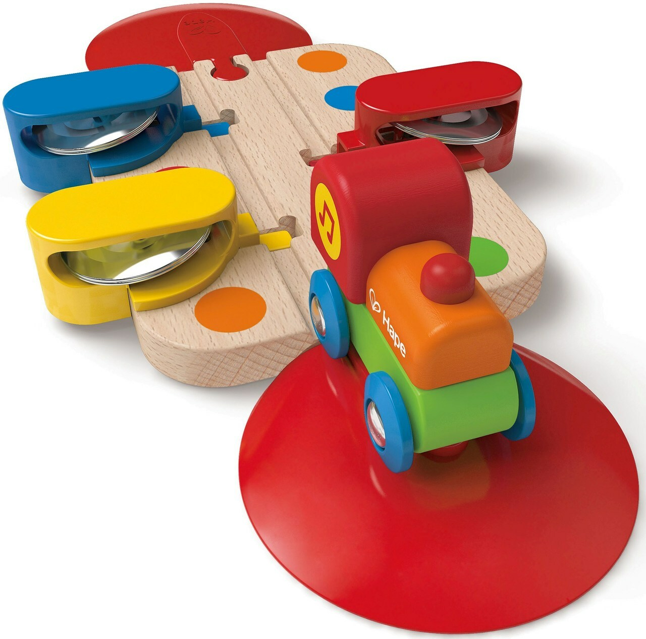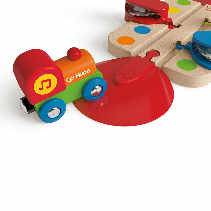 La petite Loco de Hape Rail Tambourin ajoute un air de tambourin coloré à ton circuit au rythme des passages sur les rails !