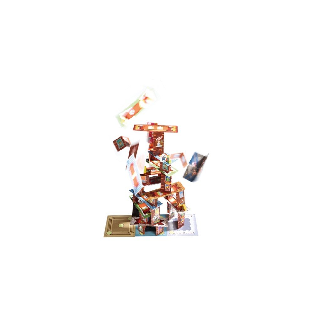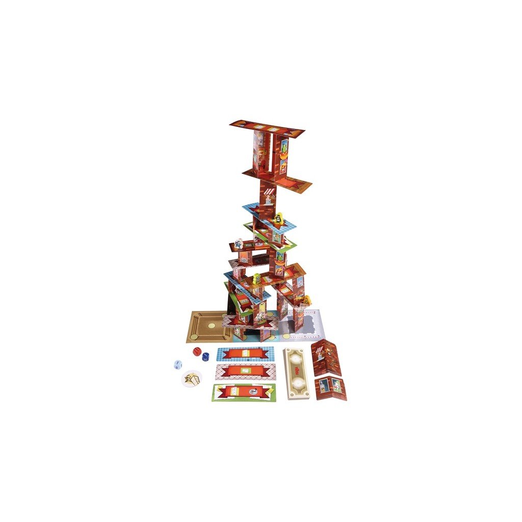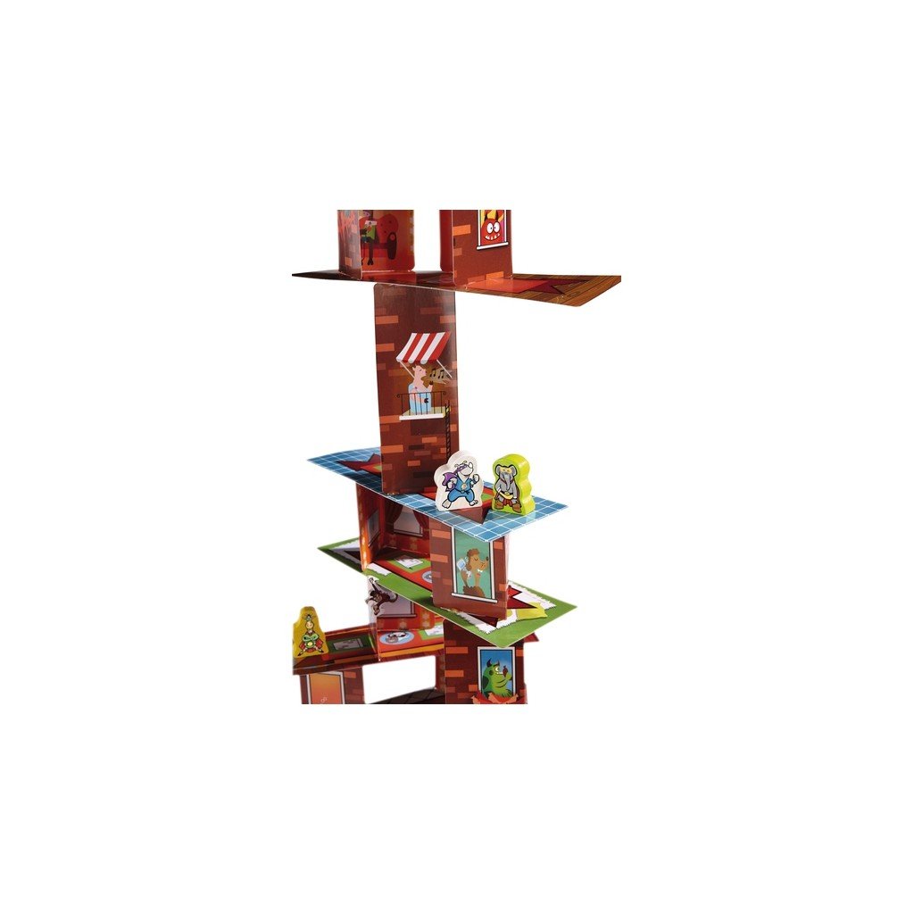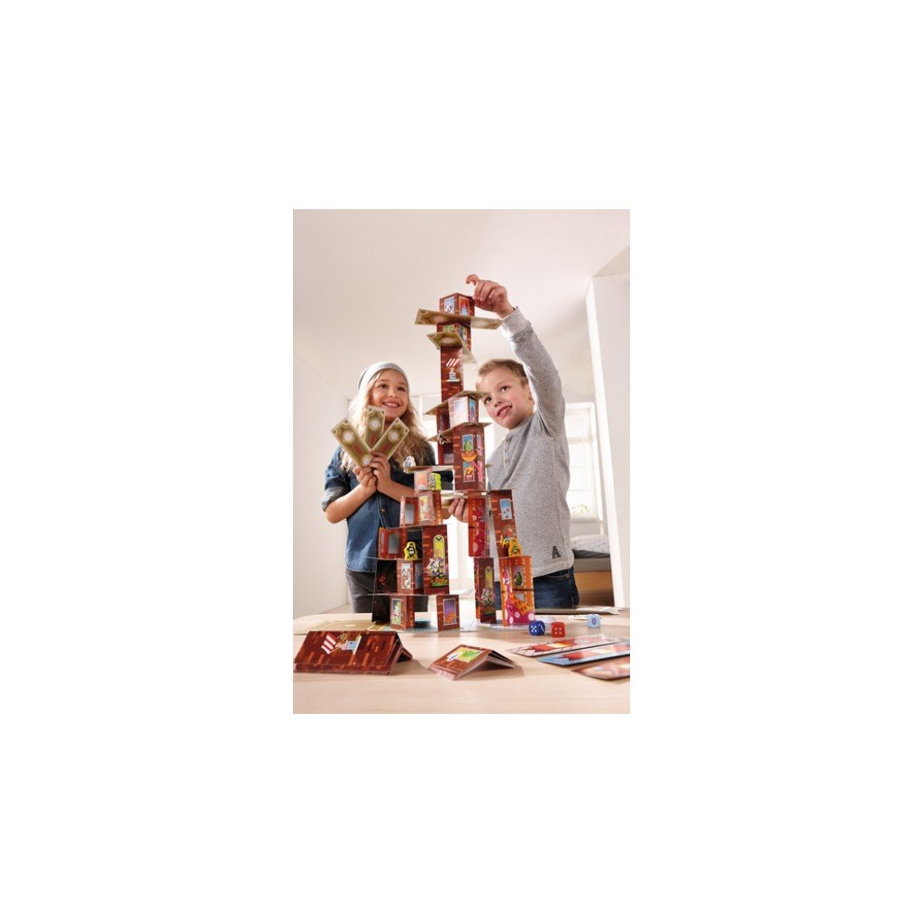 Rhino Hero et ses amis super héros vivent toutes sortes d’aventures sur le gratte-ciel de cartes. Mais attention ! Cet édifice est de plus en plus haut et instable au fur et à mesure que les cartes s’ajoutent pour former les murs et les sols. En lançant le dé avec habileté, faites grimper votre super héros le plus haut possible et défendez votre position au cours de batailles de dé contre d’autres joueurs… à moins que les Spider Monkeys ne fassent s’effondrer le gratte-ciel.