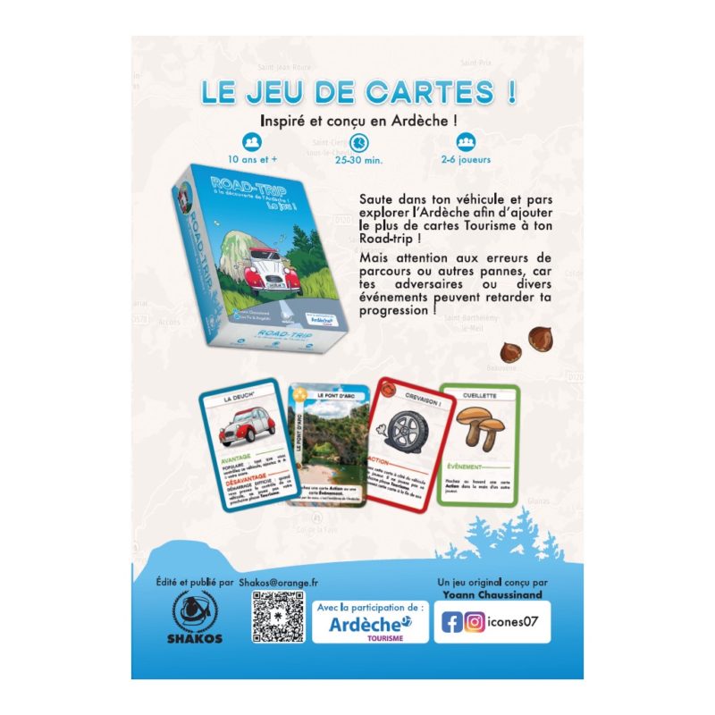 Saute dans ton véhicule et pars explorer l’Ardèche afin d’ajouter le plus de cartes Tourisme à ton Road-trip. Mais attention aux erreurs de parcours ou autres pannes, car tes adversaires peuvent retarder ta progression ! Un jeu pour toute la famille pour découvrir en famille les sites touristiques ardéchois tout en s’amusant !