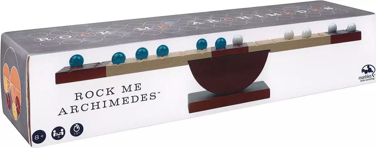 Rock me Archimedes fait appel à la pensée critique et à la perception visuelle à la fois : les lobes pariétal et frontal travaillent. C’est également un très bel objet, avec plateau en bois et matériel de qualité : on y joue et on l’expose chez soi !