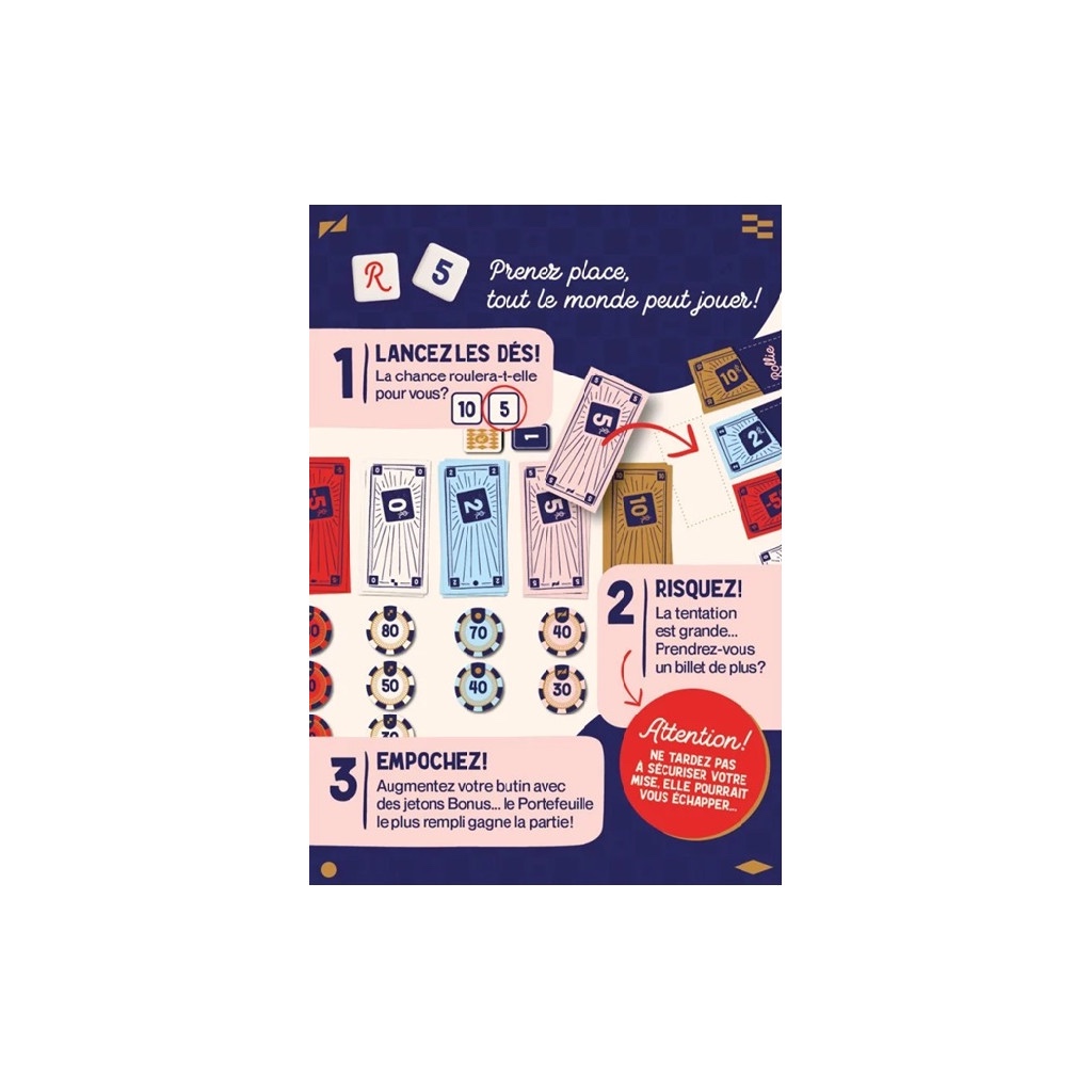 Tentez de cumuler des billets dans votre portefeuille en évitant les Krachs. Entre appât du gain et précaution, saurez-vous faire les bons choix et amassez le plus d’argent pour remporter les jetons bonus à la fin de la partie ?