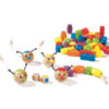 Contenu du jeu : 4 chenilles, 42 formes en bois, 1 dé couleur, 1 dé forme/symboles et la règle du jeu.