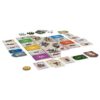 Contenu : 130 cartes – 40 pions – 5 mini-plateaux – 5 compteurs de scores – 1 pion 1er joueur – 3 dés personnalisés – 5 cartes Aide de jeu – 5 pions « complet » – 1 compteur de jours – Règle du jeu.