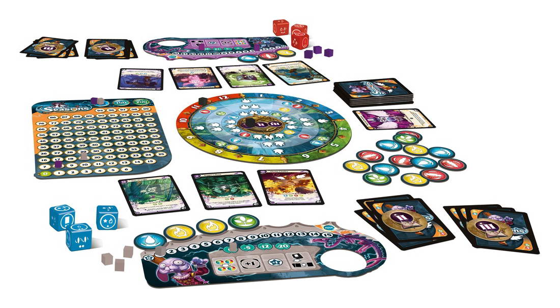 Seasons… Prenez place, magiciens – Équipez-vous de vos objets magiques ancestraux et soyez prêt à relever le défi !  Un jeu de stratégie original qui vous plonge dans un concours de sorciers aux pouvoirs ancestraux. Saurez-vous gérer votre main de cartes et tirer le meilleur parti du tirage des dés pour montrer votre puissance ?