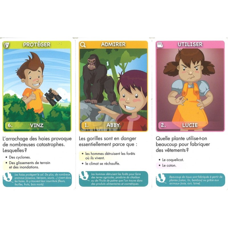 Présentation du jeu :  Avec Secoury et la biodiversité, découvrez les secrets de la faune et la flore ! 7 familles thématiques éveilleront les enfants à la richesse de la planète, pour les émerveiller sur la nature qui les entoure et leur donner envie de préserver cette biodiversité. Sur chaque carte, un encart d’informations complémentaires vous permet d’approfondir la question posée.