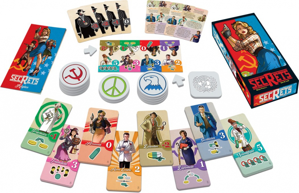 Secrets est un jeu d’identités secrètes, dont l’action se déroule durant les années 60. Chaque joueur est membre du KGB ou de la CIA, à moins qu’il ne soit un hippie. Les affiliations des joueurs, qui peuvent parfois changer en cours de partie, doivent toujours être gardées secrètes.
