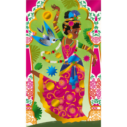Réalise de jolis tableaux brillants sur le thème Bollywood pour décorer ta chambre. Pour cela, c’est facile, il suffit de soulever la partie prédécoupée avec l’outil prévu à cet effet et de décorer avec les feuilles métallisées. Issu de la collection « Les Ateliers du Calme ».