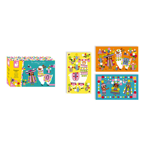 Avec ce Set d’activités créatives, issu de la collection « Les Ateliers du Calme » de Janod réalise de jolis tableaux au toucher très doux avec sur le thème des lamas ! votre enfant réalisera de jolis petits tableaux tout mignons. Pour cela, c’est facile, il suffit de soulever la partie prédécoupée avec l’outil prévu à cet effet et de positionner pompons et fils de coton en suivant des pas à pas et des modèles.
