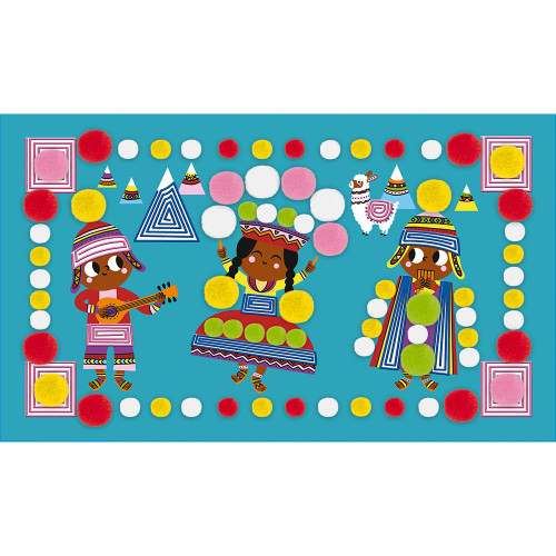 Contient : 3 tableaux autocollants à décorer avec 200 pompons, 2 fils de coton, 1 spatule. Livré avec livret explicatif.