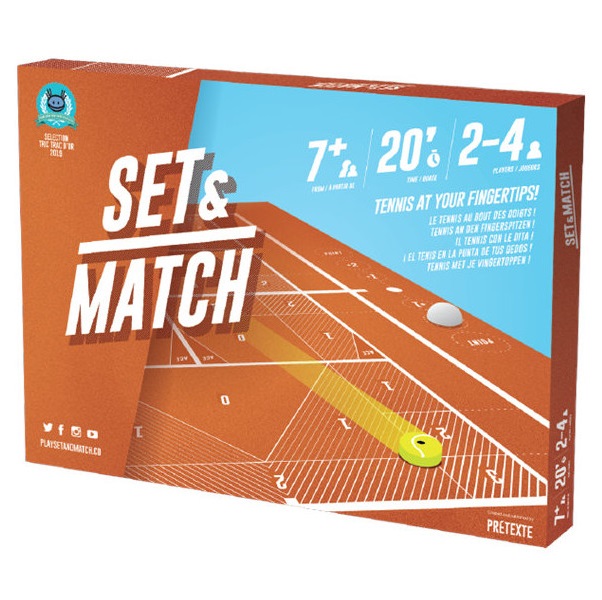 Set & Match se joue sur un plateau de jeu représentant un terrain de tennis où les joueurs, en simple ou en double, se renvoient la balle à coups de pichenettes.