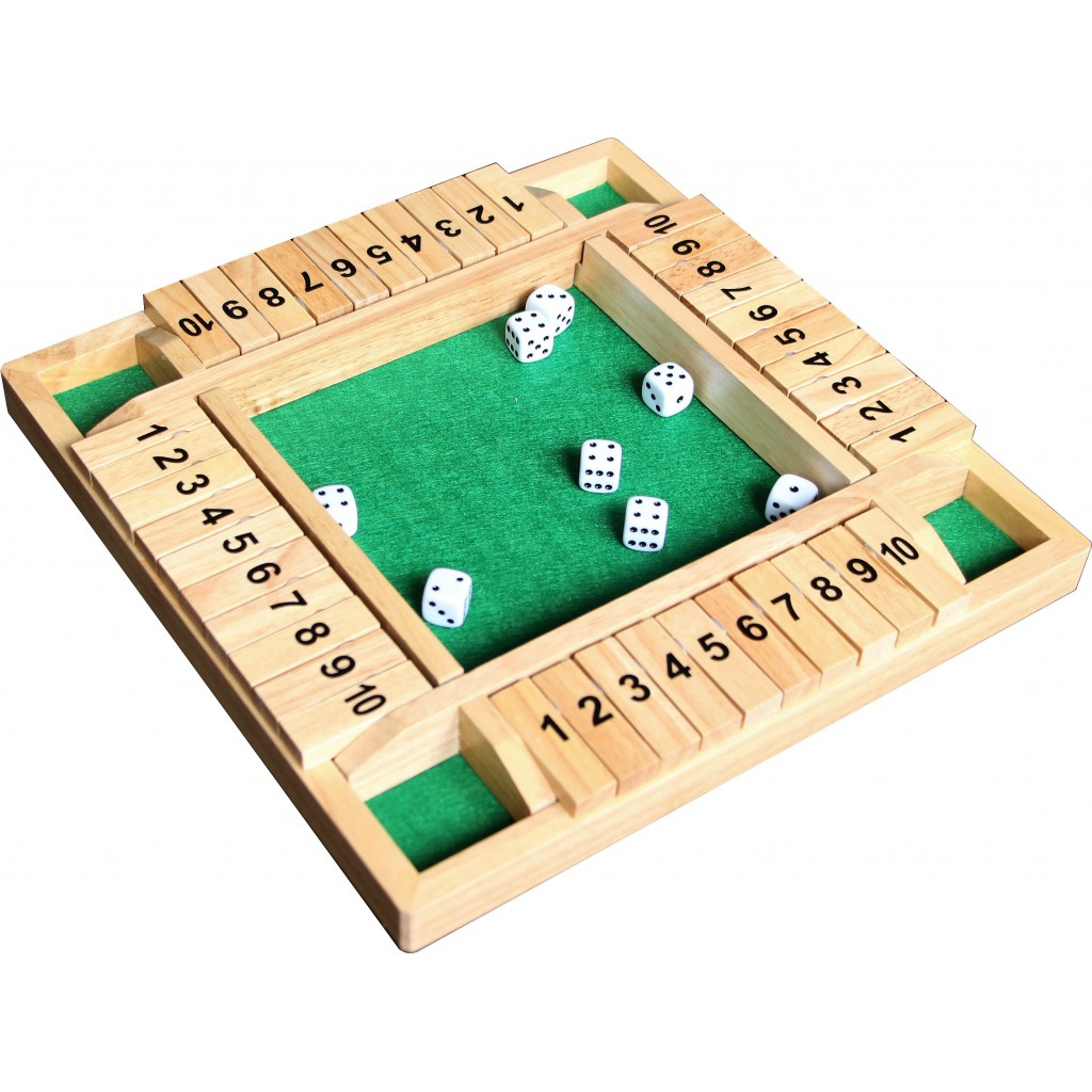 Ce simple coffret Shut The Box en bois comprend 4 séries de cases chiffrées allant de 1 à 10 et un casier recouvert de tapis vert dans lequel lancer les dés. Les règles du jeu sont simples mais il va falloir vous creuser la tête pour obtenir le plus petit résultat possible. Les 10 cases sont ouvertes, vous n’avez qu’à lancer les deux dés.