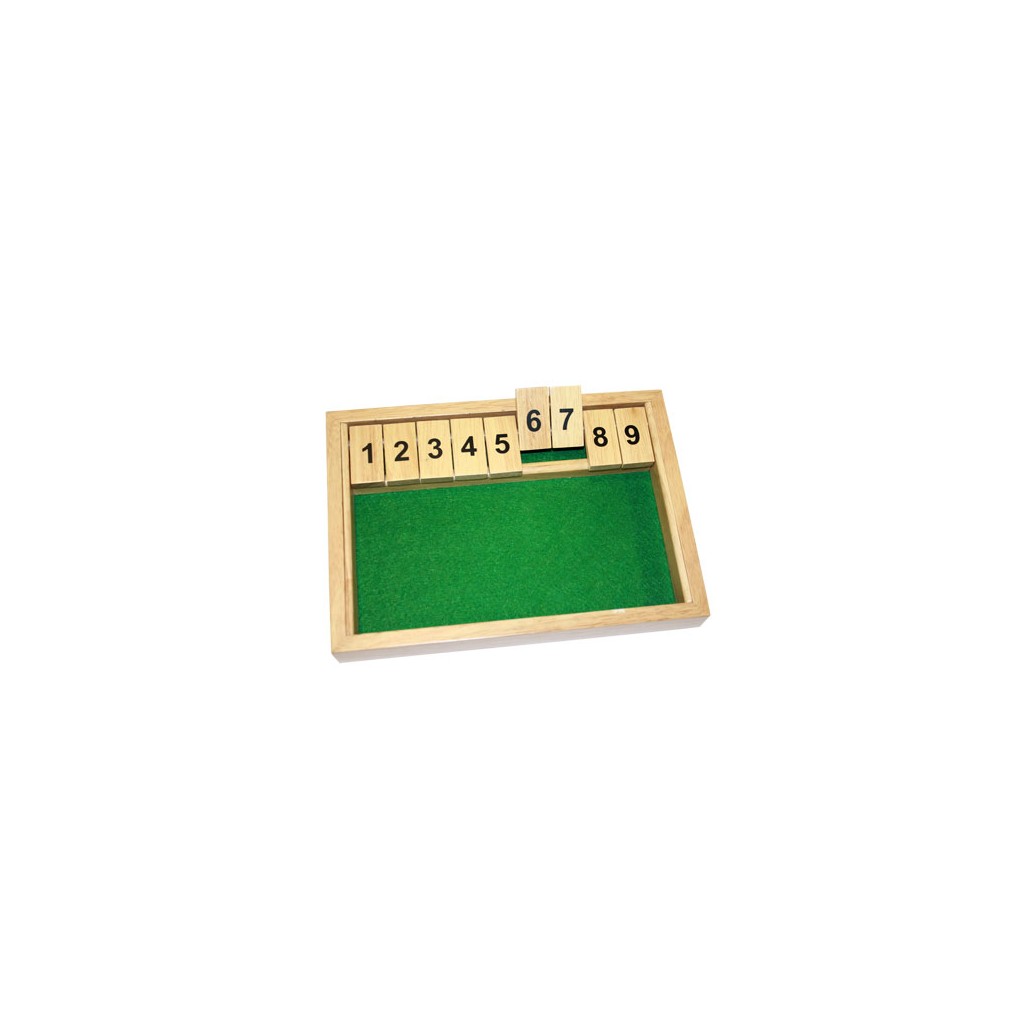 Shut the box : addictif et aussi simple que malin ! Utilisé encore aujourd’hui dans les Pubs en Angleterre : Lancez les dés et « fermez » un maximum de chiffres de la boite, en additionnant vos dés ou en les utilisant séparément. Ce mode combinatoire est très apprécié des professeurs des écoles pour l’apprentissage ludique des chiffres et la pratique du calcul mental.