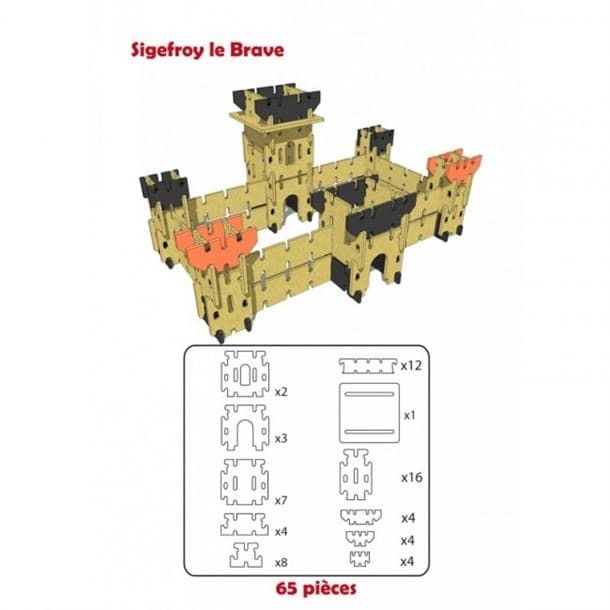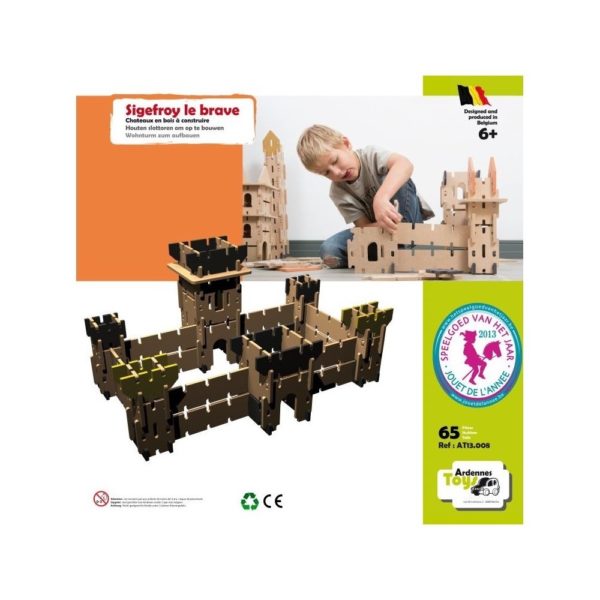 Sigefroy le Brave Château en Bois d’Ardennes Toys. Un « Must » pour les fans du Moyen Age, rien de tel que cet ensemble gèant de 65 pièces en bois qui complètera à merveille la gamme My Castles. Designé et fabriqué en Belgique. Tours, murailles, ponts, … Des possibilités infinies de construction.