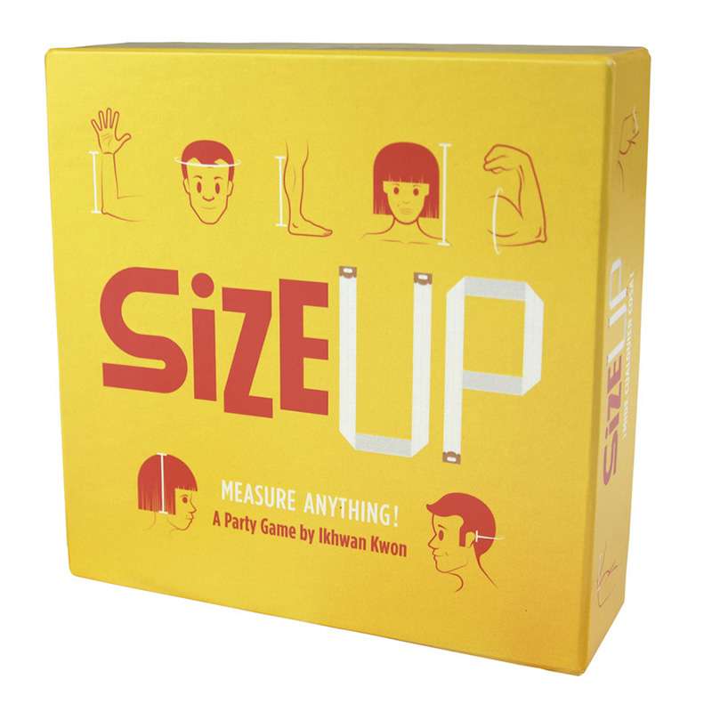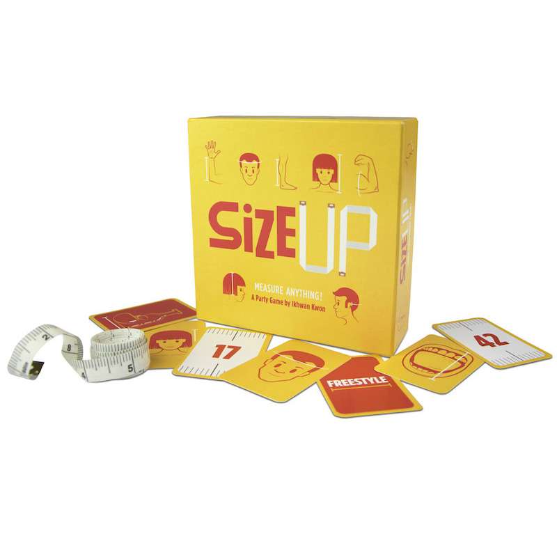 Size Up, un jeu d’ambiance. Jauger des personnes ou des objets et récoltez 5 cartes après avoir bien estimé pour remporter la partie. Dès 7 ans.